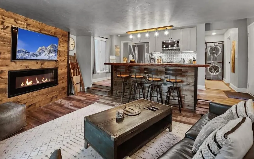 Voll ausgestattete Küche mit einem Wasserkocher, einem Kühlschrank und einem Herd wird in der Villa Stylish 2Bd 5 Min To Ski Lift And Downtown angeboten. Verbringen Sie einen schönen Abend in den nächstgelegenen Restaurants Ski Hill Grill und The Living Room- Breckenridge, die in 17 Gehminuten Entfernung von der Villa ist. Die Villa Stylish 2Bd 5 Min To Ski Lift And Downtown befindet sich in der Nähe von der Seilbahnstation Admin Carpet 2 und bietet Transportmöglichkeiten in die Umgebung.